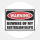 Avertissement ATTENTION À MON Sticker KELPIE AUSTRALIEN, vous pouvez customiser à www.WarningSignShirts.com et comporte un panneau rouge et noir d'avertissement et ATTENTION À MON KELPIE AUSTRALIEN en lettres noires en gras pour avertir le monde. Vous pouvez également customiser votre propre panneau d'avertissement Sticker avec le texte que vous voulez.