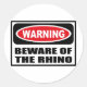 Avertissement ATTENTION AU Sticker RHINO Vous pouvez customiser à www.WarningSignShirts.com et comporte un panneau rouge et noir d'avertissement et ATTENTION AU RHINO en lettres noires en gras pour avertir le monde. Vous pouvez également customiser votre propre panneau d'avertissement Sticker avec le texte que vous voulez.