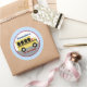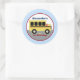 Design de bus scolaire jaune. Cet autocollant rond mignon est customisé avec vos propres 2 lignes de texte.