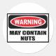 Avertissement PEUT CONTENIR NUTS Sticker vous pouvez customiser à www.WarningSignShirts.com et comporte un signe d'avertissement rouge et noir et PEUT CONTENIR NUTS en lettres noires en gras pour avertir le monde. Vous pouvez également customiser votre propre panneau d'avertissement Sticker avec le texte que vous voulez.
