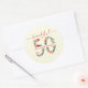 Stickers pour la 50ème fête d'anniversaire avec le message, "Beautiful" dans le script de calligraphie moderne "at" puis le nom de la fille d'anniversaire au milieu du numéro 50 (avec des lettres florales).