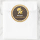 Élégant autocollants de faveur avec un adorable petit bébé avec une typographie vibrante sur un arrière - plan parties scintillant brun foncé et faux or.