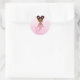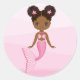 Cet autocollant rond de sirène est de couleur rose. L'autocollant est conçu avec une belle sirène afro-américaine. La sirène noire est faite de queue de poisson rose, de deux petits pains et d'étoiles de mer.