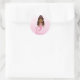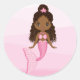 Cet autocollant rond de sirène est de couleur rose. L'autocollant est conçu avec une belle sirène afro-américaine. La sirène noire est faite de queue de poisson rose et de longs cheveux bouclés.