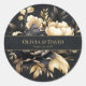 This round wedding sticker features dramatic black peonies accented with soft gold details, perfect for sealing envelopes or decorating wedding décor. Designed to coordinate with black and gold peony wedding stationery suites, it adds a cohesive and luxurious finishing touch. Fully customizable with names, initials, or dates, it works beautifully for invitations, favor packaging, or thank you cards. Ideal for gothic, romantic, or witchy wedding aesthetics. A small detail with a strong visual impact.