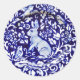 Rond Bleu blanc lapin Oiseau Floral Sticker Dedham Navy