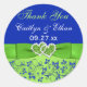 Rond Bleu, Flore verte, Coeurs Mariage Favor Sticker