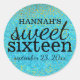 Joli autocollant de Sweet sixteen bleu qui a un piqué de parties scintillant d'or. S'il vous plaît, tous les effets ne sont pas des photos. La combinaison de polices lui donne un look hip et cool. Le nom de la fille est sur le dessus, puis le sweet sixteen et la date d'anniversaire de la fille.