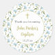 Blue Magnolias baptism thank you sticker is perfect for thank you favors! The design features watercolor blue magnolias and green botanicals with a small green cross, room to say "thank you for coming", the child's name and the date of the baptism or christening. See collection for coordinating items.