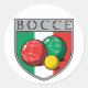 Ce graphique coloré Bocce présente trois boules Bocce dans un bouclier sur le drapeau italien de vert, blanc et rouge avec le mot Bocce.