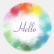 Bonjour Texte Rose Rouge Orange Jaune Bleu Bleu Violet Blanc Couleurs Main Script coloré Modèle moderne Élégant Classic Round Sticker.