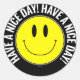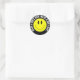 "Bonne journée !" Sticker rond Smilie jaune brillant. Conçu par SMILIEWEAR™. Répandez un peu de bonheur ! Des autocollants de grande et petite taille sont disponibles. CONCEVOIR DES OPTIONS D'ARRIÈRE-PLAN EN COULEUR SOMBRE OPTIMISÉES. Un autocollant drôle et heureux pour emballage cadeau, un accessoire personnel, ou un autocollant de nom d'anniversaire ou de fête de Noël. Quoi de mieux qu'un autocollant avec un sourire ?