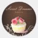 Rond Boulangerie Cupcake Sticker Linge Brown Roses rose