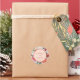 Joli autocollant mariage, rond avec pêche et arrière - plan d'ivoire, et une belle bordure fleurie.