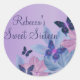 Cet élégant autocollant personnalisable en Sweet sixteen présente des papillons violets et bleus sur un arrière - plan violet brillant. Customisez-le en ajoutant vos détails dans la police de votre choix !