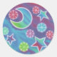 Un ciel nocturne aux couleurs vives avec étoiles brillantes et lune rayée. Sticker avec un design personnalisable violet, rose, bleu et vert pour vous permettre de personnaliser avec votre propre texte, images et idées. Un dessin original au crayon coloré par Jess Perry.
