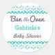 Cet autocollant moderne est idéal pour un Baby shower avec un thème "Bun in the Oven". Il contient les mots "Bun in the Oven" et comprend un arrière - plan plaid et une bordure en dentelle en haut et en bas. Ce design élégant a une allure rétro. La couleur turquoise, blanche et grise en fait l'endroit idéal pour un baby shower neutre pour les hommes et les femmes.