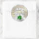 Cent mille bienvenus (mille mille de défaut) est le message transmis sur une bannière d'or avec un Claddagh sur cet autocollant rond. Sous la bannière se trouve l'image d'un beau shamrock émeraude. Voir confettis assortis, sac de faveur, étiquette de faveur et papier d'emballage. Voir l’ensemble de la collection d’autocollants de la Saint-Patrick aux INVITATIONS | Section Stickers & Étiquettes.