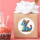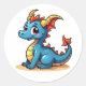 Adorable cartoon dragon sticker featuring bright blue scales, fiery orange accents, and a friendly smile. Great for laptops, notebooks, and phones.