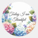 Découvrez ce charmant autocollant de remerciement sur le thème de l'hortensia prêt à être utilisé. Les hydrangées, avec leurs grandes fleurs et leurs feuillages luxuriants, sont des fleurs de jardin bien-aimées. "Aujourd'hui, je suis reconnaissant"