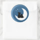 Des autocollants personnalisables pour les amoureux des animaux avec une jolie illustration de silhouettes noires de chat et de chien assis ensemble sur la lune, observant les étoiles. Vous pouvez personnaliser ces autocollants avec du texte personnalisé. Design disponible également sur divers autres produits.