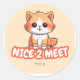 Rond Chat Orange Cute "Nice 2 Meet You" Sticker - Drôle