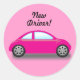 Sticker avec une jolie voiture rose et un texte qui dit, "Nouveau conducteur !" Le texte peut rester "tel quel" ou peut être modifié selon votre choix. La couleur arrière - plan peut également être customisée.