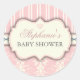 Rond Chic Damask & Stripe Baby shower Favoriser Sticker