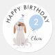 Célébrez l'anniversaire de votre enfant avec cette jolie illustration de chiot avec un casquette de fête et un ballon. Personnalisez cet autocollant d'anniversaire amusant en ajoutant le nom et l'âge de votre enfant. Le casquette de la fête et le ballon sont de couleur bleue.
