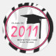 Un autocollant de graduation avec un arrière - plan de zèbre imprimé. Texte à côté du bouchon noir de graduation à l'intérieur du cercle rose dit "Classe de 2011." Personnalisez avec votre nom ou votre nom d'école.
