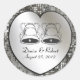 Parfait pour les fiançailles, les mariages et les fêtes d'anniversaire avec le joli graphisme ajouté de deux cloches mariages. Stickers Motifs de fête de la Fièvre Shiny Disco Populaire! Cool, mignon, amusant design d'autocollants de parties scintillant brillant sont les autocollants parfaits maintenant dans cette forme ronde populaire. Un style cool et tendance en paillettes argentées à l'aspect métallique arrière - plan motif proche d'un globe de danse à billes miroir de style disco rétro, vintage, brillant, brillant, Faites des étiquettes-cadeaux amusantes pour la Saint-Valentin, les anniversaires, les fêtes, etc aussi! Ajouté est un coeur argenté brillant sur le dessus donnant un regard 3d à ces stickers amusants. Ajoutez facilement les noms de mariée et de mariée et la date de personnaliser du mariage.