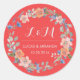 Rond Coral Rouge Floral Wreath Wedding Favor Sticker