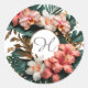 Add botanical elegance to your world with these large 3-inch round stickers. Featuring vibrant hibiscus and golden leaves with a personalized monogram. Perfect for gift seals, laptops, or stationery.