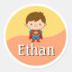 Rond Customizable Kids Name Sticker – Smiley Superhero