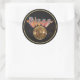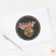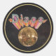 Un autocollant rond qui correspond à notre invitation "Disco la nuit" avec l'image d'une boule Disco éblouissante et "Disco" en lettres tubulaires roses et jaunes dans le ciel nocturne avec une bordure dorée. Voir collant vinyle taillé sur mesure, invitation, enveloppe, confetti, sac de faveur, étiquette de faveur, étiquette et papier d'emballage. Voir toute la collection Disco les années 70 Sticker dans les INVITATIONS | Section Stickers & Étiquettes.