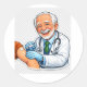Cute chibi doctor sticker illustration featuring a friendly medical professional giving a vaccine. Perfect for healthcare workers, nurses, doctors, and medical students. Kawaii style profession sticker with clean lines and soft colors. Great for laptops, water bottles, and notebooks.