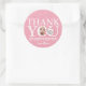 Fun anniversaire de fête merci Sticker avec ballon de mot comique rose et fleurs roses simples. Vous pouvez créer un Merci original amusant Stickers & Étiquettes en remplaçant simplement la photo du visage de votre bébé par un échantillon de photo. C'est parfait pour une fête d'anniversaire de petite fille de retirer des cadeaux et ravira votre famille et vos amis. S'il vous plaît glissez dans une petite boule d'humour dans la bulle de la parole !