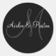 Rond Élégant Sticker Mariage Monogram noir & blanc