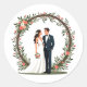 Comprend 20 petits autocollants sur une feuille. Un charmant autocollant avec un couple en tenue mariage sous une arche fleurie, parfait pour ajouter une touche romantique à vos affaires.