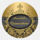 Rond Élégant Sticker Quinceanera Black & Gold Damask