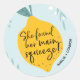 Scellez vos enveloppes d'invitation ou vos faveurs avec ces adorables stickers au citron. Avec un citron et un script amusant "Elle a trouvé son pressage principal". Coordonnées avec la collection de la taille principale trouvée dans la boutique Adore Paper Co. Zazzle.