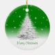 Rond En Céramique Arbre De Noël Blanc Sur Ornement Vert