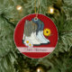 couple de campagne, premier Noël ensemble ornement. Personnalisé ce pays ornement à thème occidental sur le dos avec tout texte utilisant le modèle fourni. Deux paires de bottes et de petites fleurs sur un arrière - plan rouge est un design original et unique.