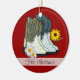 Rond En Céramique Bottes Cowboy, Premier Ornement Personnalisé De No