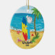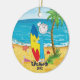 Notre ornement personnalisé et daté unique de Noël de surfer comporte le chiffre le plus mignon fille de bâton de surfer réglée sur l'arrière - plan bleu de l'eau d'océan avec un palmier ! Personnalisez avec votre information et date et vous sont tous placent pour aller ! Cadeau daté merveilleux de souvenir pour votre arbre de Noël et une grande addition à vous collection d'ornement de Noël.