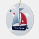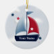 Un joli voilier nautique sur un ornement de Noël conçu par Charmaine Paulson. L'ornement a des modèles texte pour votre personnalisation. ©2013charmainepaulson