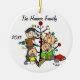 Un joli ornement de Noël en céramique de conservation ronde comprend une famille de figurines en bâton, dont un père, une mère, une fille et un garçon en bas âge ainsi qu'un chat de famille devant un arbre de Noël décoré avec des zones que vous pouvez customiser avec votre nom de famille et l'année en cours! Ce joli ornement de gardien de vacances fait un grand cadeau pour la jeune famille de commémorer une année spéciale!