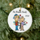 Un joli ornement de Noël en céramique de conservation ronde comprend une famille de figurines en bâton, dont un père, une mère, un garçon et un petit garçon devant un sapin décoré de Noël avec des zones que vous pouvez customiser avec votre nom de famille et l'année en cours ! Ce joli ornement de gardien de vacances fait un grand cadeau pour la jeune famille de commémorer une année spéciale!