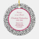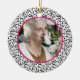 Le texte et la photo de cet ornement photo de Noël commémoratif (forme ronde) sont faciles à customiser. Le design damassé floral noir et blanc et le cadre rose chaud en font un joli et chic "en souvenir" de Noël. Sur le dos, vous pouvez le customiser avec le nom de votre être cher, ainsi que customiser les versets commémoratifs et les années vécues. Pour modifier le texte et la photo, utilisez les options de personnalisation. Pour des modifications plus importantes de l'ornement, y compris la modification de la police, de la taille de la police, de la couleur de la police, du placement du texte, de la taille de l'image et/ou du placement de l'image, utilisez l'option customiser.