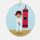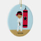 C'est un ornement adorable de Noël pour ce garçon qui aime le karaté dans votre vie ! C'est un garçon adorable dans le sien gee. À côté de lui est un grand sac rouge accrochant avec une étoile noire au milieu de lui. Vous pouvez personnaliser avec le nom. Vérifiez les nombreuses autres conceptions et couleurs dans cette ligne. Aimez ce souvenir pour beaucoup, beaucoup d'années ! illustrations de ©JW